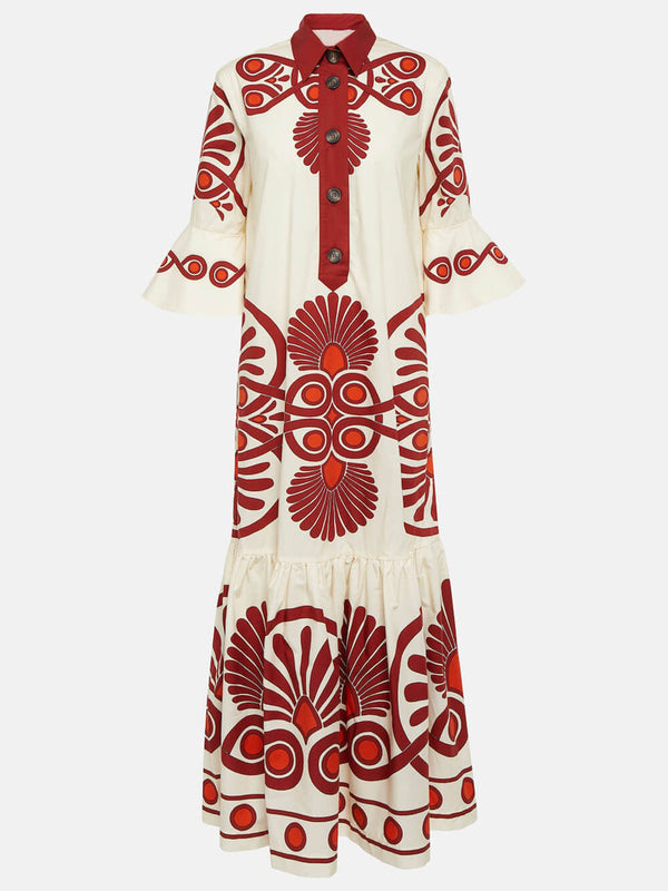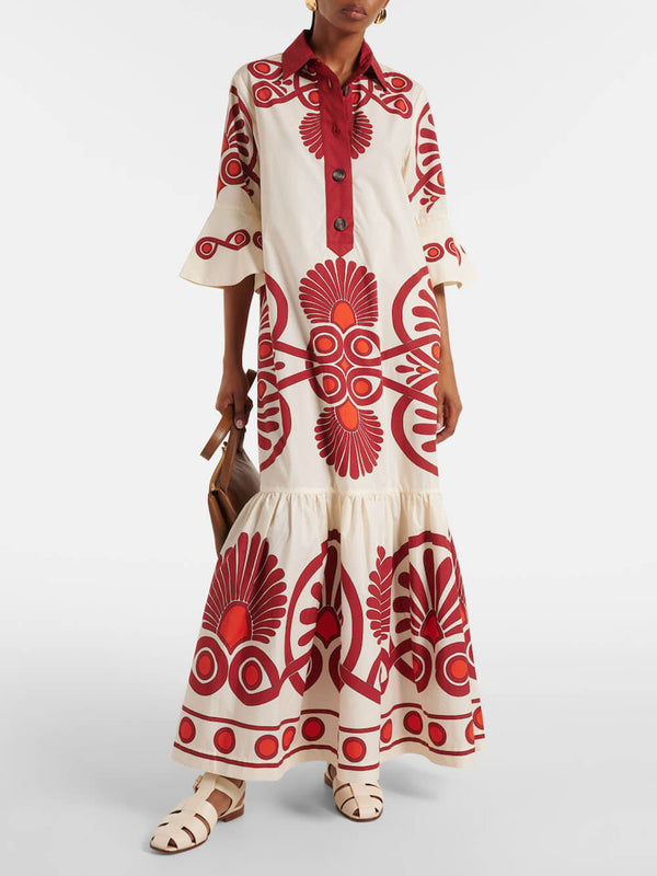 Classic Unique Ethnic Print Button Decoration Loose Maxi Dress